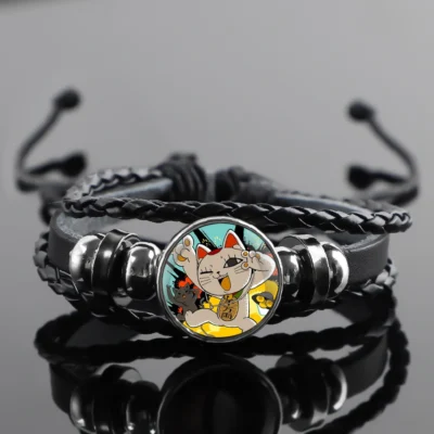 Dandadan Lucky Cat Design Vintage Leather Rope Bracelet